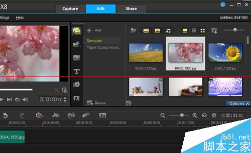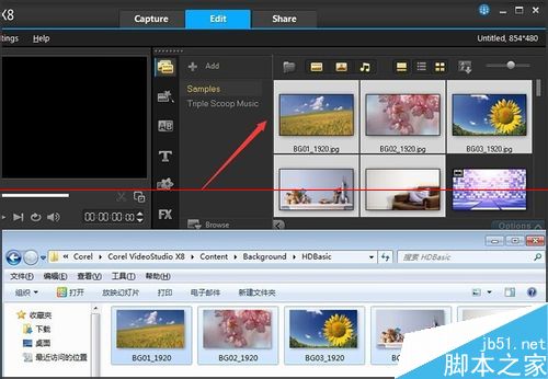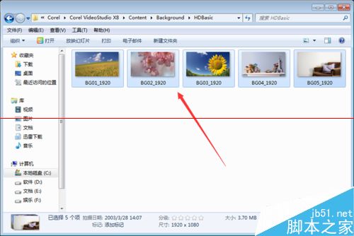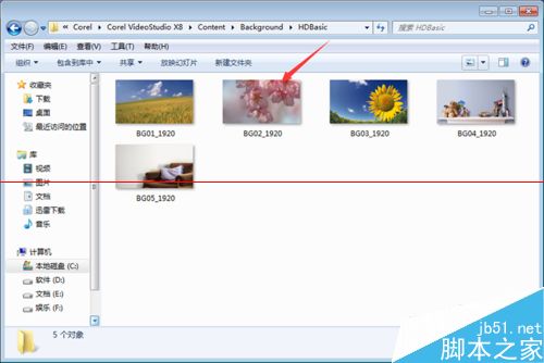 在會聲會影x8的軟件界面中,我們可以看到一些軟件自帶的圖片,但是圖片并不多,是不是本身軟件自帶的圖片就不多呢?其實在安裝目錄中還是有其它的高清圖片的,下面就說一下其中的一個文件夾所包含的圖片。