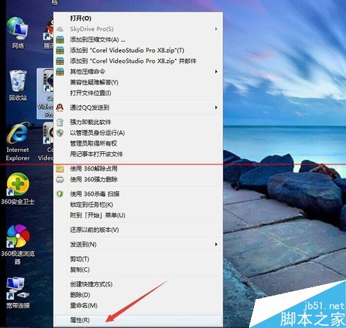 1、首長我們點擊會聲會影x8,右鍵點擊并打開屬性對話框