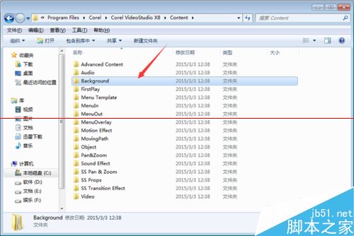 4、雙擊打開Content文件夾后,在目錄中找到Background文件夾,并雙擊打開