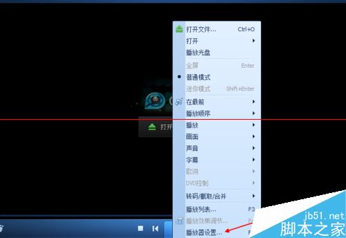 2、然后我們在空白處右鍵的,出現大量的對話框,我們找到下邊的播放器設置