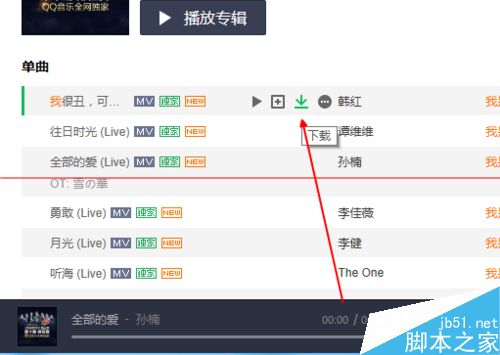 5、我們找到一首歌,把鼠標放上去,就出現下載的小箭頭