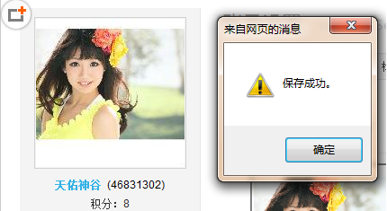 3、系統(tǒng)會(huì)提示我們頭像保存成功了,我們可以看到已經(jīng)更換好的頭像和系統(tǒng)提示如下: