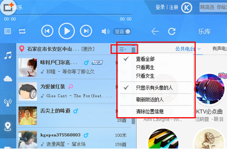 一、打開酷狗音樂盒,選擇“附近”