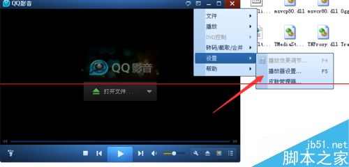 3、找到設置后面的播放器設置,快捷鍵是F5