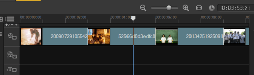 3、用鼠標拖動該時鐘效果到視頻軌的圖片之間就實現了圖片和圖片之間的切換。
