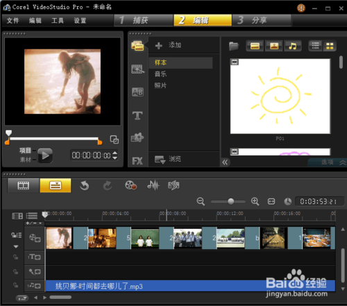 1、打開制作好的視頻雛形,即只有照片和音樂,如圖示: