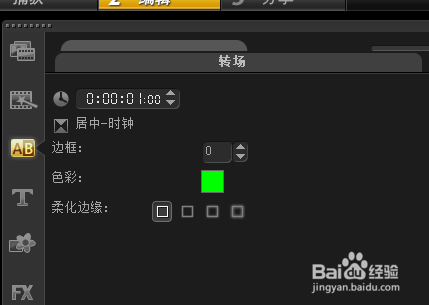 4、改變切換效果時間長度:用鼠標雙擊視頻軌道上兩個圖片之間的轉場,會出現一個面板,如圖示,點擊面板上面的時間按鈕可以改變切換效果的時間長短。