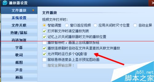 5、我們把允許多個QQ影音勾選上就搞定了。
