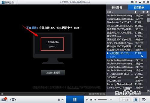 4、連接成功后,我們打開播放列表,隨便打開一部本地或者在線的視頻,視頻就會被投到dlna設備上播放。如果要切換到電腦上播放,單機暴風影音中的“切回到本機播放”。
