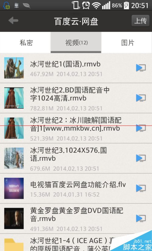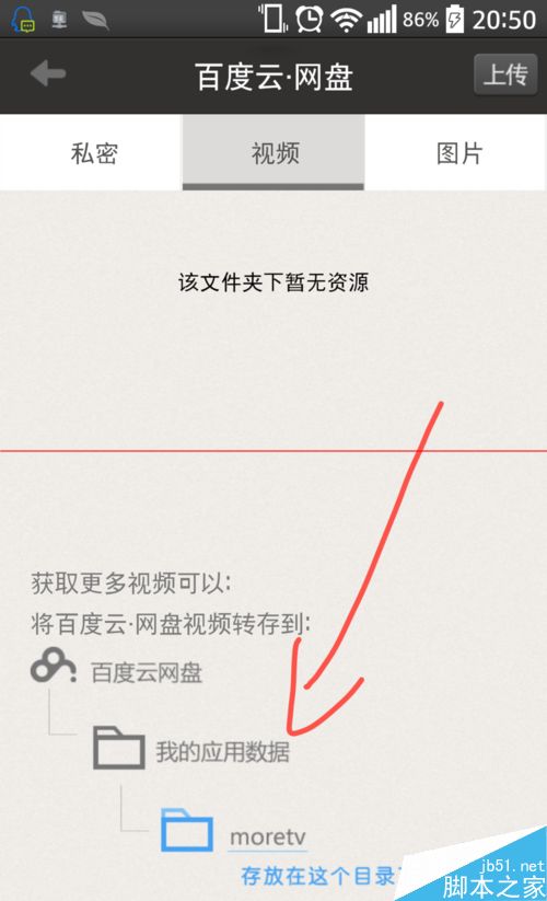 6、綁定成功之后,在你的百度云空間中會(huì)建立一個(gè)我的應(yīng)用數(shù)據(jù)-moretv文件目錄。將你的百度云中的視頻資源或電影移動(dòng)到此目錄下面。