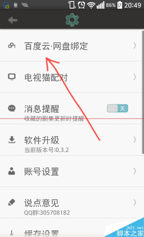 2、在設(shè)置界面中,點(diǎn)擊百度云網(wǎng)盤綁定。