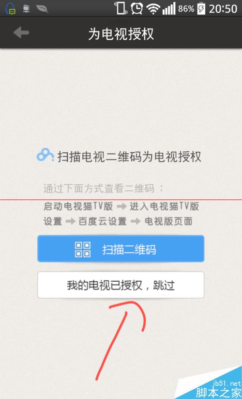 5、若你有安卓智能電視,并在電視安裝了電視貓MoreTV軟件,則可以為電視授權(quán)。可以使用手機(jī)上的電視貓MoreTV推送電影到電視上播放。筆者的電視已授權(quán)則點(diǎn)擊跳過(guò)。