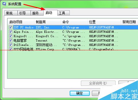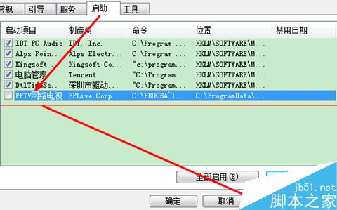 5、去掉【PPTV網絡電視】前面的勾(不讓它自動啟動),接著按【應用】,搞定了,問題解決了,如圖