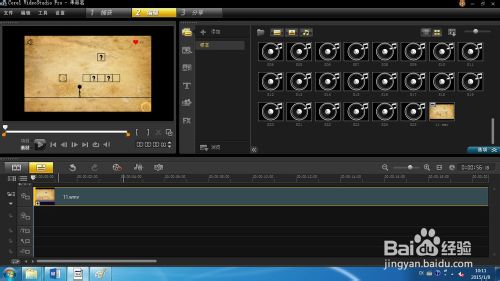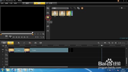上一步完成后媒體文件已經(jīng)被拖入到“視頻軌”中了。