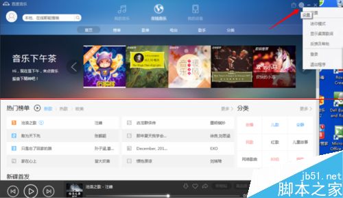 1、打開電腦版的百度音樂播放器,點擊右上角一個齒輪狀的圖標,即“設置”圖標。