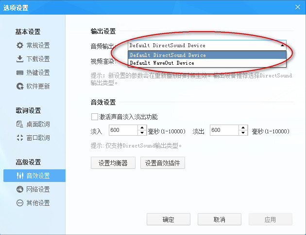 酷狗的設(shè)置里面有個選項(xiàng)---音頻設(shè)置---選擇合適的設(shè)備即可