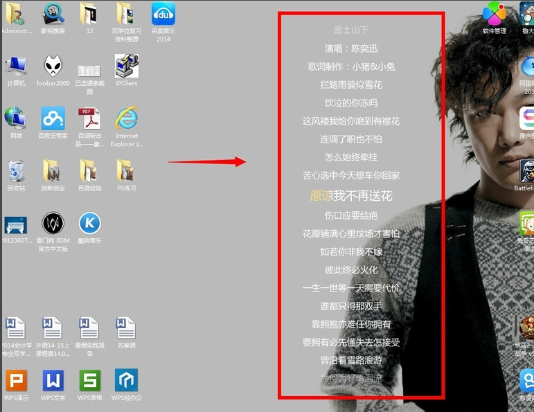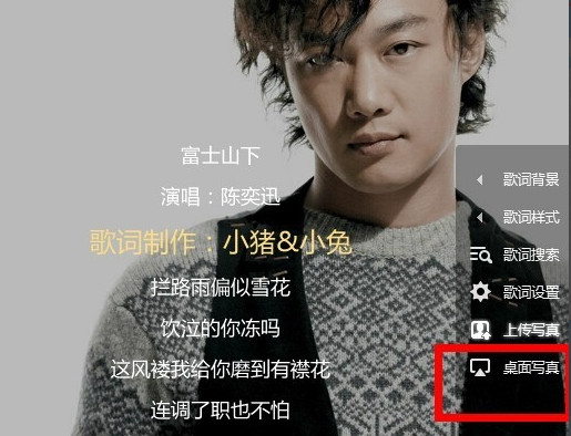 3、接著點擊右邊的“桌面寫真”這一項,就可以看到歌詞在桌面播放了
