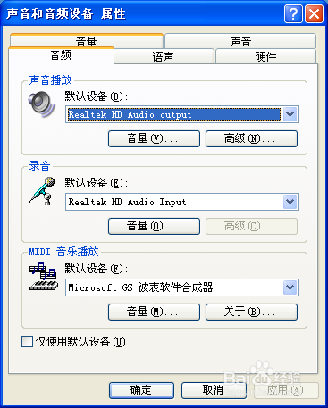 5、點(diǎn)開之后,你會(huì)看到,有一個(gè)默認(rèn)設(shè)備(E),下面有個(gè)音量選項(xiàng),左鍵單擊點(diǎn)開。