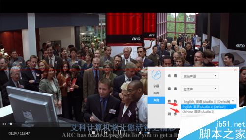 6、接下來,我們在聲音這個界面便是可以調節(jié)聲軌了,一般來說一部2,3G的電影里面都有兩到三個聲軌,大家自己看吧。
