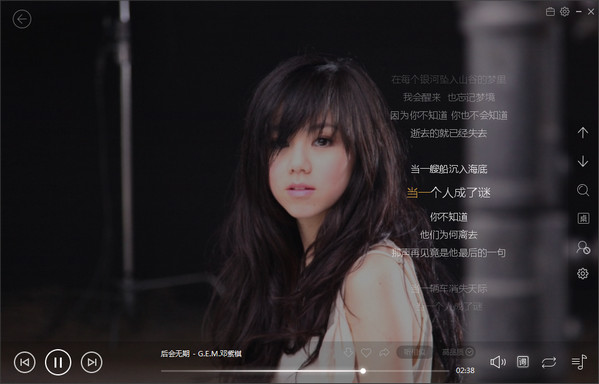 然后在歌詞寫真界面直接雙擊鼠標(biāo)左鍵,即可完成歌詞全屏設(shè)置,按ESC鍵即可退出,是不是方便了很多?