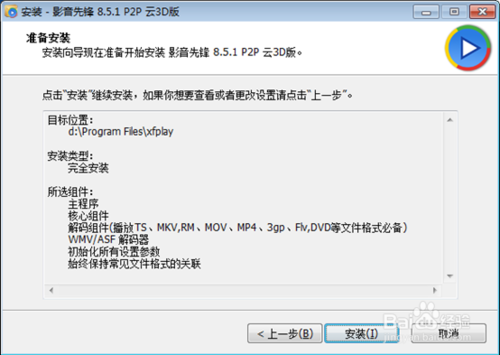 設置好之后,再次進行確認影音先鋒播放的安裝信息。點擊安裝繼續