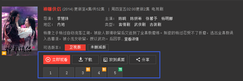 2、在“視頻庫/推薦頁”打開視頻詳情頁,點擊播放/劇集表;如圖: