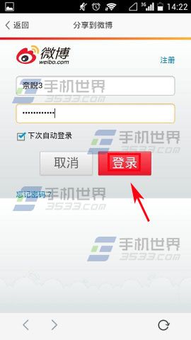 3)彈出選擇后擊【分享我的二維碼】,進去之后輸入微博賬號、密碼點擊【登錄】。(如下圖)