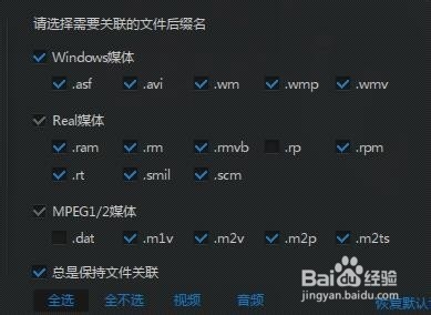 4、根據需要選擇要關聯的文件類型,也可點擊全選,選好后點擊確定