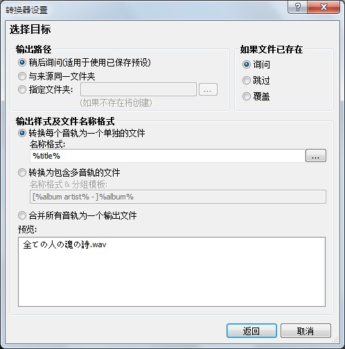 目標(biāo),轉(zhuǎn)換后所在文件夾設(shè)定,文件名設(shè)定等等,如圖: