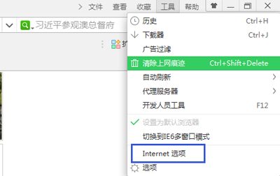 退出搜狐影音后啟動IE瀏覽器,選擇“工具—Internet選項(xiàng)”。如圖: