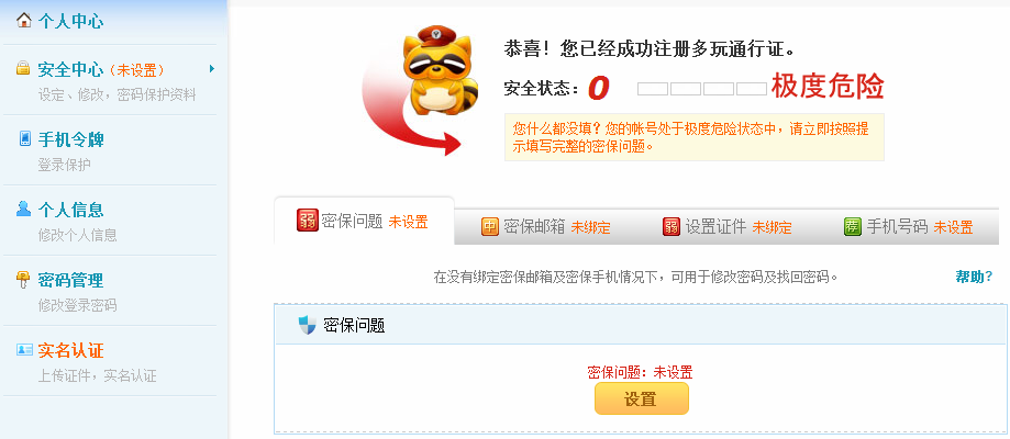 郵箱:在設置密保時設定安全郵箱(密保設置)