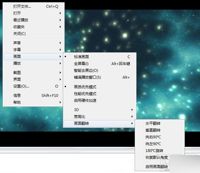 3、然后選擇“畫面翻轉”,再選擇一種翻轉方式,例如:向右90,那么畫面就顯示成了向右翻轉90了。