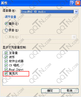 如果存在該項,則勾選上這一項。如果該項沒有,則說明聲卡不支持麥克風和耳機直連。點擊“確定”,音量控制面板會變成如下: