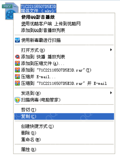3、播放的時候(因為當你沒有播放的時候文件會自動刪除mkv格式的文件)復制mkv格式(也就是你需要的)的文件到其他的文件夾并重命名(易識別)。