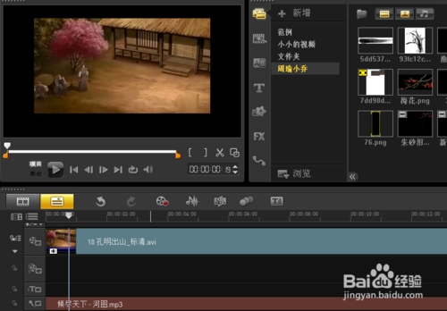 5、接著,打開會聲會影。把事先剪輯好的視頻以及圖大的音樂分別添加的視頻軌和音樂軌、