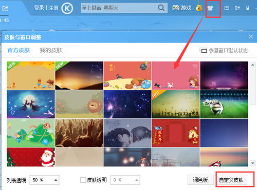 1、請您安裝最新版的酷狗,啟動時就會自動下載最新的皮膚。如果安裝完第一次啟動不能自動下載皮膚,請重新啟動酷狗。
