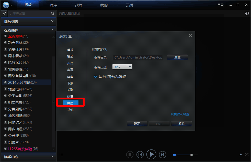 包括:截圖保存路徑、截圖格式類型、每次截圖是否詢問等