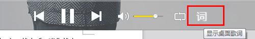 桌面歌詞入口1:在音樂盒界面下方點擊“詞”按鈕,將展現所在播放歌曲的桌面歌詞功能;(如下圖)