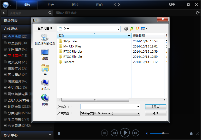 6、如果你在本地有BT種子文件,你可以點擊打開BT種子,你可以選擇打開.torrent格式的種子文件