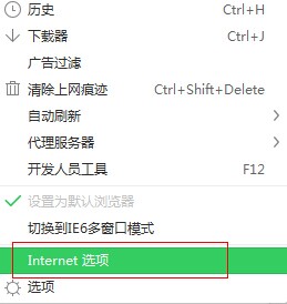 方法三、瀏覽器菜單“工具”——“Internet 選項”(我以360瀏覽器舉例)