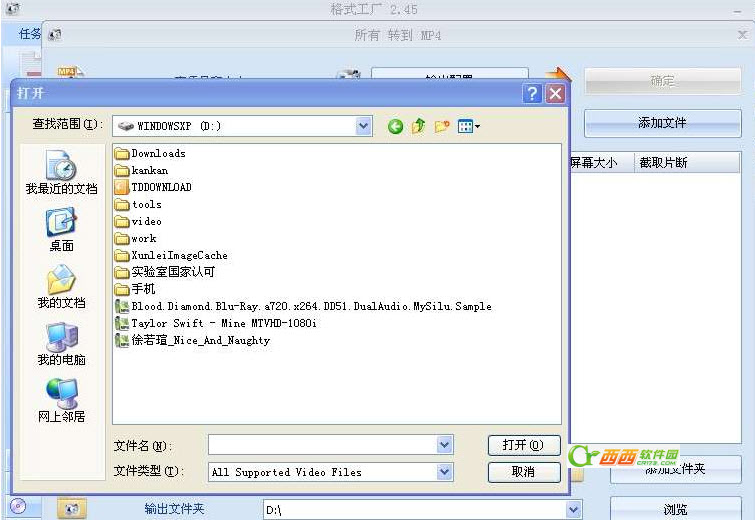 四、然后就按添加文件啦,在彈出的選擇框里選擇你要轉(zhuǎn)換的視頻源,沒找到,把文件類型改成“all files”嘛。