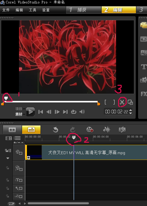 建議先用1拖到大概位置再用2細致的找。3那個是剪刀,你確定在哪里是你需要的或者需要剪掉不需要的,就點擊那個剪刀就可以了