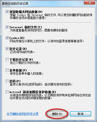 然后在刪除歷史瀏覽記錄窗口中點擊底部的“刪除”按鈕