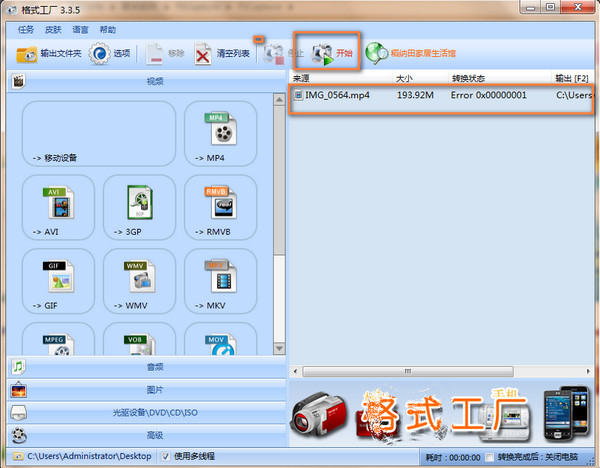 第七步:在主界面點擊“開始”,然后就是等待截取結束,可以在輸出文件夾看到剛才截取好的視頻