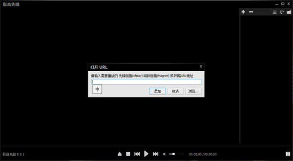 找到之后,找到影音先鋒的右上角第三個(gè)按鈕,可以選擇打開磁力鏈接,就能彈出下面窗口: