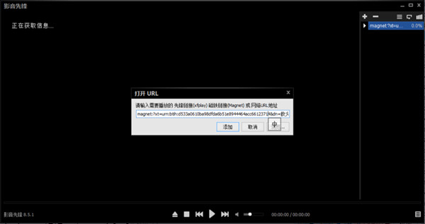 添加磁力鏈接之后,左上角就會有“正在獲取信息”字樣,依照資源速度和帶寬,決定你的播放速度