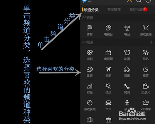 登陸完成后,返回到PPTV的首頁,點(diǎn)擊頻道分類,選擇喜歡的頻道種類-。-