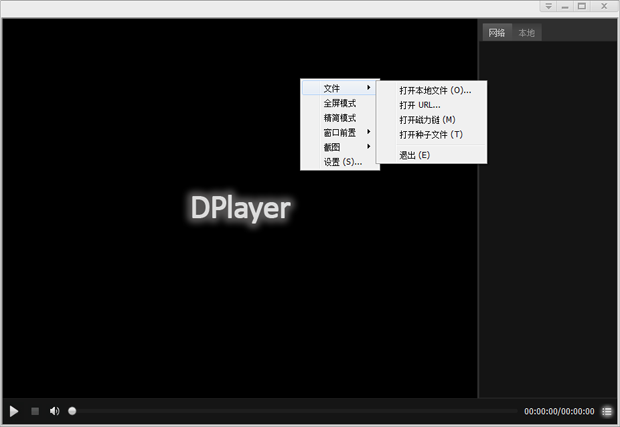在播放器右邊,可以選擇"本地”和“網(wǎng)絡(luò)”,對播放列表進行操作,在播放列表上點擊右鍵,可以進行相關(guān)操作。