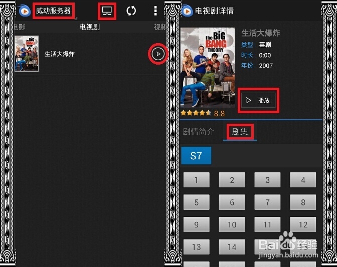 威動服務器會自動聯網加載電影的相關信息,如演員表、劇情簡介、海報等。點擊 “播放”按鈕即可觀看。