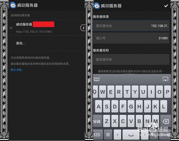 啟動手機、平板端的威動播放器(VidOn Player),確保手機(平板)和小米路由在同一個局域網里。在威動播放器的左上角選擇“威動服務器”選項,點擊右上角“電腦”圖標,此時威動播放器將自動搜索電腦中的威動服務器,點擊連接即可。如沒有檢測到可手動添加,輸入服務器IP即可。